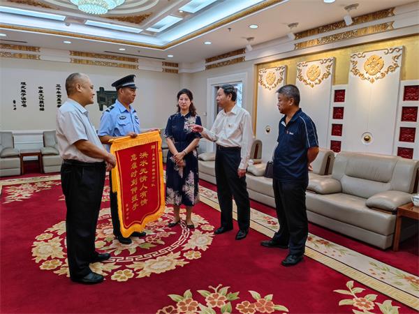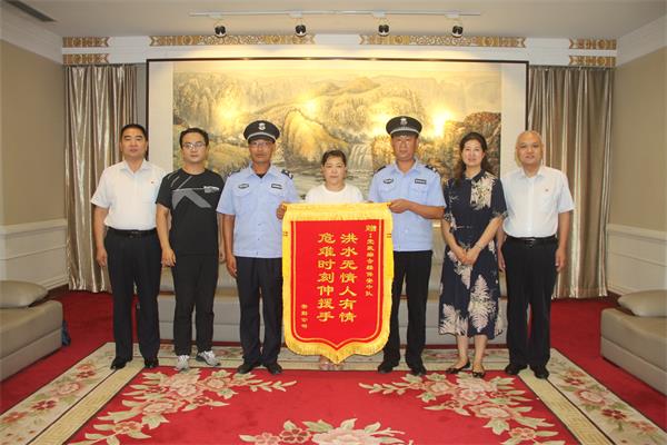 2021年7月28日下午3點(diǎn),“感謝你們,我這條命是你們撿回來(lái)的!”安勤公司員工曹運(yùn)玲拿著“洪水無(wú)情人有情,危難時(shí)刻伸援手”的錦旗在市黨政綜合大樓一樓會(huì)客室送到市黨政綜合樓保安中隊(duì)中隊(duì)長(zhǎng)戶永豐手中,感謝他們的救命之恩。安陽(yáng)市機(jī)關(guān)事務(wù)中心、三級(jí)調(diào)研員陳紹華,機(jī)關(guān)事務(wù)中心、保衛(wèi)科長(zhǎng)孫文勝,安陽(yáng)市安勤商務(wù)公司董事長(zhǎng)兼總經(jīng)理劉全喜;安勤商務(wù)公司副總經(jīng)理王軍;安陽(yáng)經(jīng)開(kāi)集團(tuán)黨委委員、副總經(jīng)理劉志霞,公司黨委委員、副總經(jīng)理魏東,總經(jīng)理助理、人防分公司經(jīng)理李向陽(yáng),參加此次活動(dòng)。