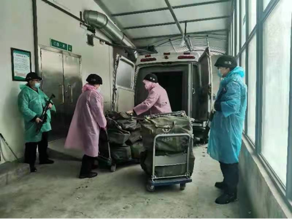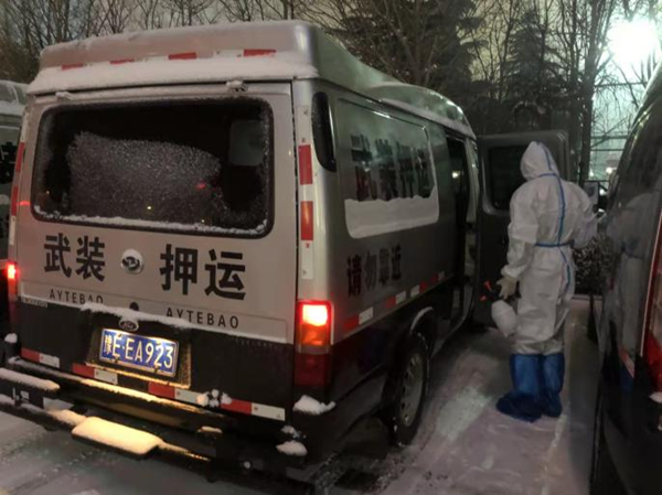 早上6點(diǎn),我們的押運(yùn)車緩緩駛出中行大門。靜謐的街道,隨處可見的圍擋,戒備森嚴(yán)、如臨大敵的檢查點(diǎn),時刻提醒著大家疫情的嚴(yán)重狀況和全社會為抗疫所做出的努力。通過檢查點(diǎn)時,看著認(rèn)真負(fù)責(zé)的工作人員,大家心里一暖,我們不是孤軍,戰(zhàn)勝疫情的信念更堅(jiān)定了。