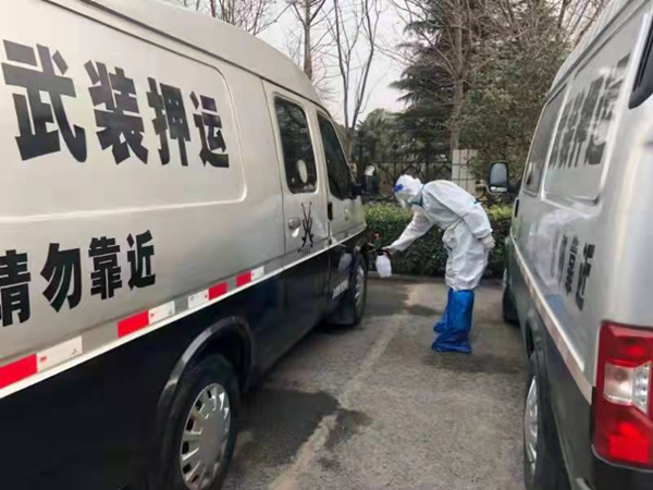 簡單的早餐過后,同志們按照《疫情防控期間押運(yùn)應(yīng)急工作預(yù)案》開始了出車前的準(zhǔn)備工作,辦公區(qū)域和押運(yùn)車輛的消殺、防護(hù)裝備的檢查與消毒,一切都做的一絲不茍。