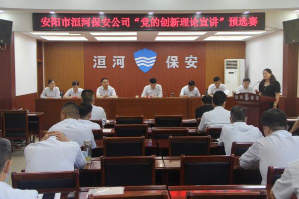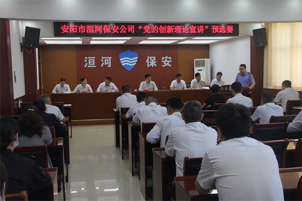 為深入學(xué)習(xí)貫徹習(xí)近平新時(shí)代中國(guó)特色社會(huì)主義思想和黨的十九大及歷次全會(huì)精神,推動(dòng)黨的創(chuàng)新理論入腦入心,團(tuán)結(jié)引領(lǐng)廣大職工堅(jiān)定跟黨走、建功新時(shí)代,激勵(lì)全體洹河保安人以更加昂揚(yáng)的精神狀態(tài)迎接黨的二十大勝利召開(kāi),2022年5月19日下午,公司黨委舉辦“黨的創(chuàng)新理論宣講”預(yù)選賽,黨委書記、董事長(zhǎng)、總經(jīng)理王高峰,黨委委員、副總經(jīng)理魏東到會(huì)觀摩,比賽由黨委副書記張錫軍主持。
