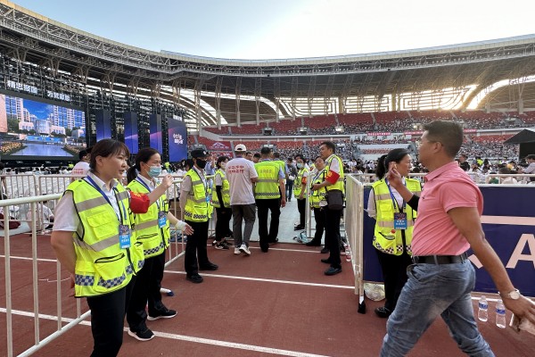全體執(zhí)勤人員克服活動(dòng)時(shí)間長(zhǎng)、天氣炎熱等困難,提前4小時(shí)到崗到位,自始至終服從命令、聽(tīng)從指揮,堅(jiān)守崗位,認(rèn)真履責(zé), 既維護(hù)現(xiàn)場(chǎng)秩序,又服務(wù)群眾。在酷暑之下,全體安保人員頭頂烈日的“拷問(wèn)”,腳踏熱浪的“侵襲”,堅(jiān)守在體育場(chǎng)內(nèi)的每個(gè)執(zhí)勤點(diǎn)。