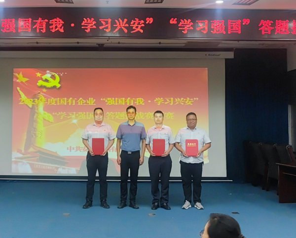 2023年8月4日,市國企黨委舉辦2023年度國有企業(yè)“強國有我·學習興安”“學習強國”答題挑戰(zhàn)賽預賽,來自全市17家國有企業(yè)共50人參加比賽,公司黨委副書記、監(jiān)事長張錫軍帶隊,由9名選手組隊代表公司參賽。經過激烈角逐,公司以平均成績第一名榮獲優(yōu)秀組織獎,安大鵬榮獲個人一等獎,趙高飛、馮文峰、喬力榮獲個人二等獎,肖冬、聶紹軍榮獲個人三等獎。