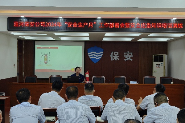 2024年6月是全國(guó)第23個(gè)“安全生產(chǎn)月”,主題是“人人講安全、個(gè)個(gè)會(huì)應(yīng)急--暢通生命通道”。為深入貫徹落實(shí)習(xí)近平總書記關(guān)于安全生產(chǎn)重要論述和重要指示精神,扎實(shí)推進(jìn)安全生產(chǎn)治本攻堅(jiān)三年行動(dòng),6月13日上午,公司召開2024年“安全生產(chǎn)月”工作部署會(huì)暨安全應(yīng)急知識(shí)培訓(xùn)演練。集團(tuán)黨委委員、紀(jì)委書記尚飛,公司全體黨委委員出席會(huì)議,各部門負(fù)責(zé)人、各大隊(duì)負(fù)責(zé)隊(duì)伍管理的中層干部及中隊(duì)長(zhǎng)代表參加會(huì)議。會(huì)議由公司黨委副書記、監(jiān)事長(zhǎng)張錫軍主持。