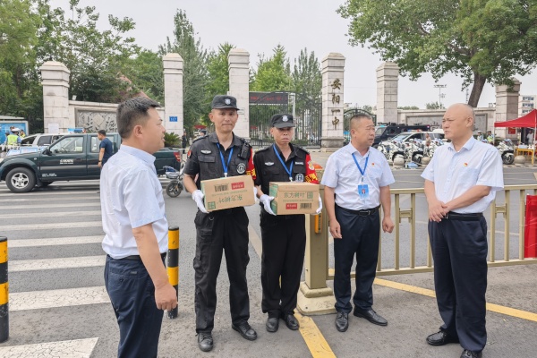 為切實做好高考期間安全保障工作,確??忌鷵碛邪踩?、有序的考試環(huán)境,6月7日上午,公司領導班子深入市區(qū)各高考考點,實地檢查督導高考安保工作,并親切慰問堅守一線的執(zhí)勤保安員,為他們送去防暑降溫物資和公司的關懷問候。