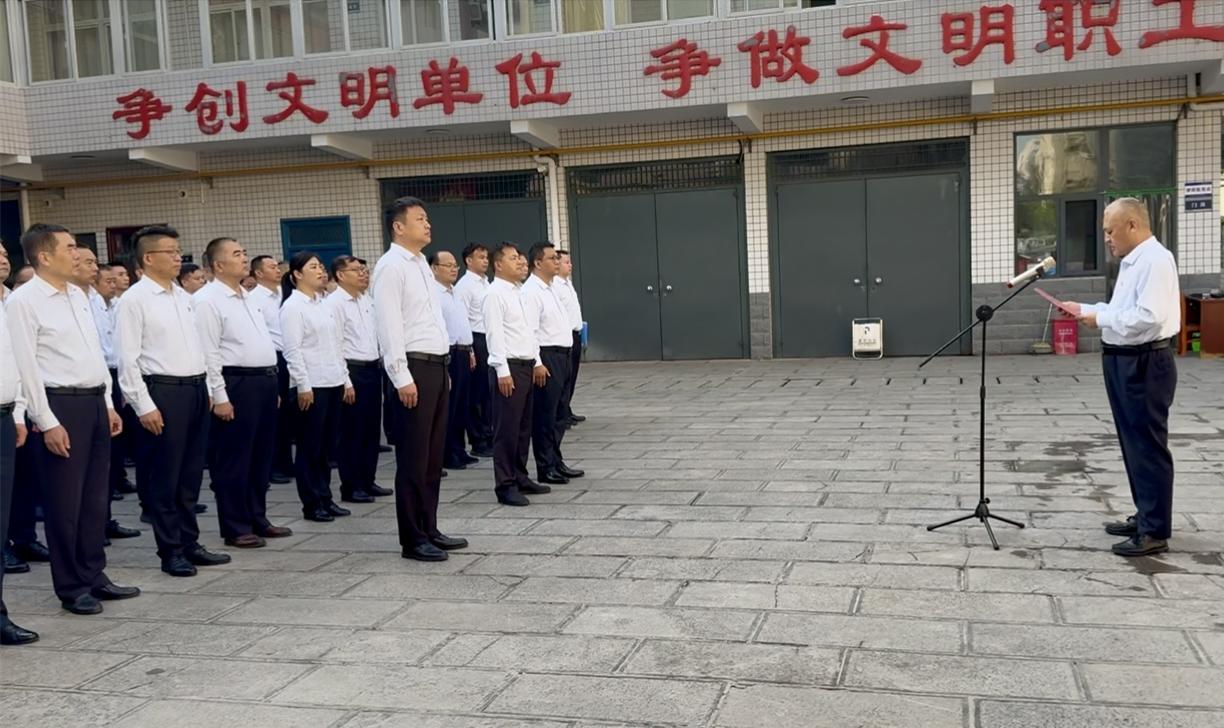 儀式開始,伴隨著雄壯的《義勇軍進(jìn)行曲》,鮮艷的五星紅旗在全體人員的注視下緩緩升起、迎風(fēng)飄揚(yáng),全體職工身著整齊工裝,面向國(guó)旗行注目禮,現(xiàn)場(chǎng)氛圍莊重而熱烈,盡顯對(duì)祖國(guó)的崇敬與熱愛之情。