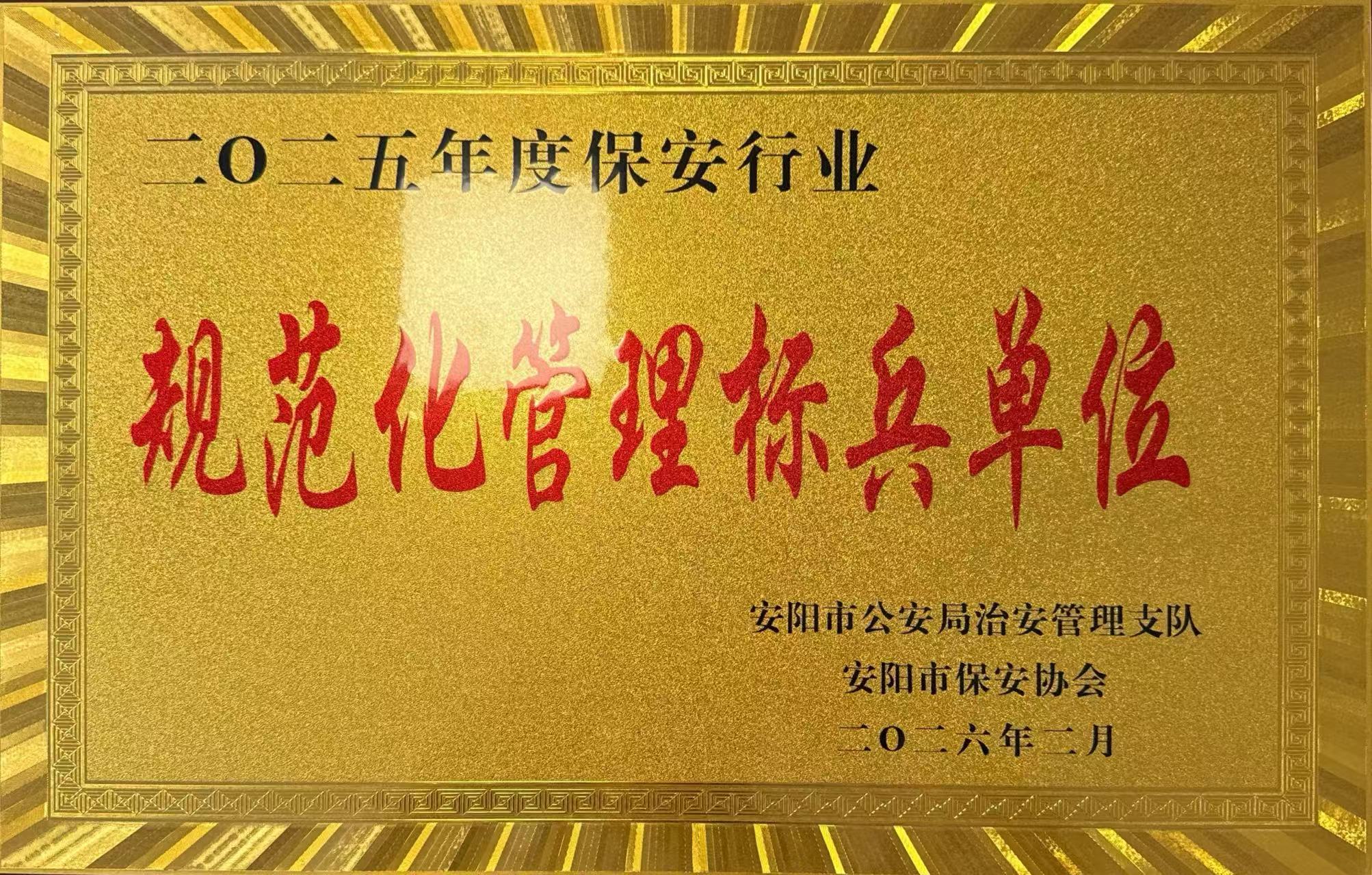2月10日上午,安陽市保安協(xié)會(huì)2026年度工作會(huì)議隆重召開。會(huì)上,公司被授予“保安行業(yè)規(guī)范化管理標(biāo)兵單位”榮譽(yù)稱號(hào),這是行業(yè)主管部門與協(xié)會(huì)對我司規(guī)范化建設(shè)、精細(xì)化管理與高品質(zhì)安保服務(wù)的高度認(rèn)可與充分肯定。