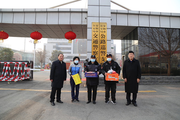 隨后,公司領(lǐng)導(dǎo)分成三組先后到人防安陽(yáng)幼師、龍安區(qū)政府崗點(diǎn),守押六大隊(duì)、守押十大隊(duì)駐地,特保大隊(duì)開(kāi)發(fā)區(qū)巡防駐地、中國(guó)文字博物館崗點(diǎn),鼎誠(chéng)物業(yè)海興御花園、交警支隊(duì)項(xiàng)目部,藍(lán)盾駕校、鼎信公司,對(duì)堅(jiān)守在工作崗位的員工進(jìn)行了慰問(wèn)。