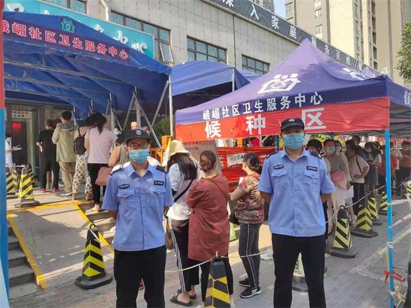 6月22日上午10時(shí),在峨嵋社區(qū)衛(wèi)生服務(wù)中心新冠疫苗臨時(shí)接種點(diǎn),前來接種疫苗的市民人頭攢動(dòng)。人防一大隊(duì)巡防隊(duì)員一邊在全力保障現(xiàn)場(chǎng)正常秩序,一邊耐心細(xì)致地解答在場(chǎng)群眾的各種咨詢和提問。