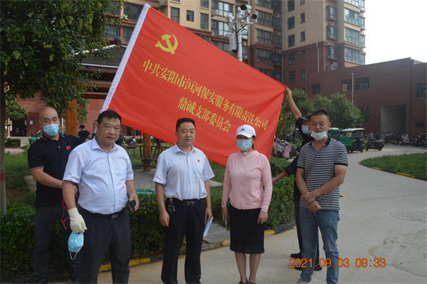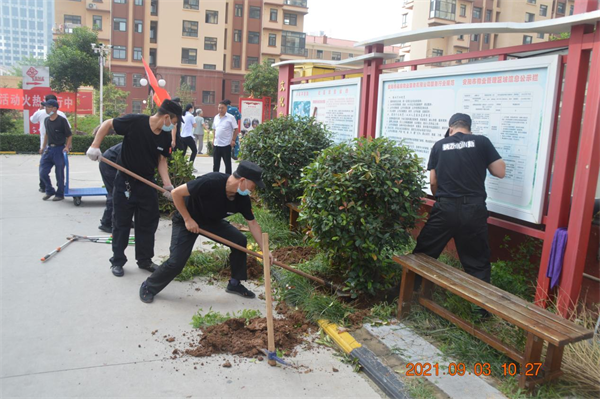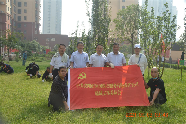 9月3日,安陽鼎誠物業(yè)服務(wù)有限公司組織全體黨員、預(yù)備黨員、入黨積極分子,抽調(diào)各項目綠化人員、技術(shù)骨干、行政管理人員100多人,冒著雨后的炎熱,開赴安陽西南部,會戰(zhàn)金鼎園。