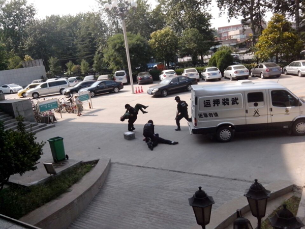 10月15日,守押二大隊在農(nóng)業(yè)銀行安陽市行院內(nèi)開展了一次暴恐突發(fā)事件應(yīng)急演練暨消防安全培訓(xùn)。本次演練共設(shè)置兩個科目分別為:遭遇持械搶劫運鈔車事件處置演練、消防器材實操及現(xiàn)場滅火應(yīng)急預(yù)案演練。