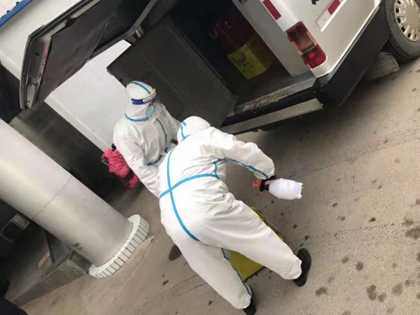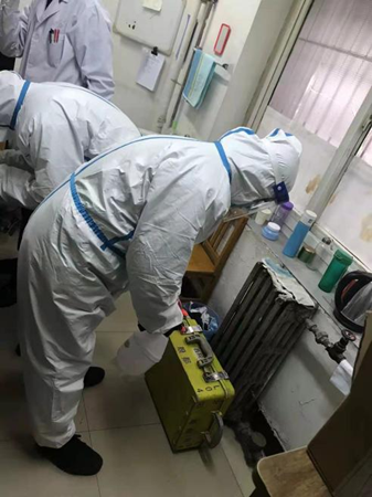 演練中,大隊模擬接到中國銀行通知,需要到人民醫(yī)院接收錢款勤務。大隊出勤人員首先進行消毒穿戴防護服,完成消毒程序后車輛出車,到達人民醫(yī)院和銀行工作人員嚴格按照消毒程序對款箱進行交接,隨后將款箱押至規(guī)定地點,車輛回隊后再按照程序進行消毒交接。