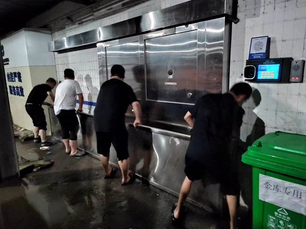 當(dāng)晚,他們對地下室以及金庫門前實(shí)施防汛措施,隨著水位逐漸升高,隊員們各自就位提高警惕,按照預(yù)案要求,全力以赴保障金庫和內(nèi)部安全。