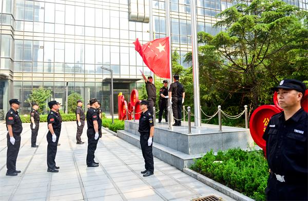 早上8點(diǎn),在升旗現(xiàn)場,人防一大隊(duì)抽調(diào)的12名國旗護(hù)衛(wèi)隊(duì)員個個精神抖擻整裝待發(fā)。隨指揮員 “標(biāo)—兵—就—位”口令下達(dá),升旗儀式正式開始,12名護(hù)旗手邁著整齊的步伐走向旗桿。掛旗、拋旗,隨著護(hù)旗手一串瀟灑的動作,五星紅旗隨著鏗鏘有力的國歌聲冉冉升起!在場的聯(lián)通公司職工仰望著五星紅旗,吟唱著國歌,被12名護(hù)旗手的出色表現(xiàn)感染者,整個現(xiàn)場充滿著激昂向上的氛圍。聯(lián)通公司領(lǐng)導(dǎo)職工對12名護(hù)旗手表現(xiàn)非常滿意!