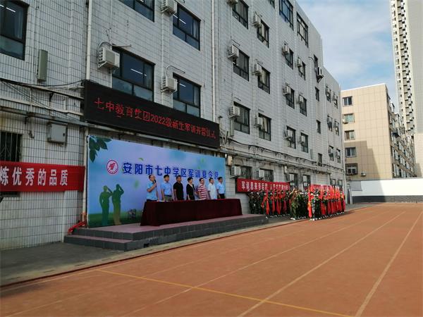 8月24日上午9時,市七中教育集團2022級新生軍訓開營式在校園操場隆重舉行,安陽市洹河保安公司承擔了此次軍事夏令的軍訓任務。開營式上,進行了軍事技能展示,選派教官以高昂的士氣、整齊的隊列動作展示了訓練有素的良好形象。
