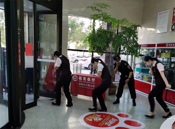 為進(jìn)一步強(qiáng)化“國(guó)慶”、“二十大”期間金融部門(mén)銀行業(yè)對(duì)外營(yíng)業(yè)安全及應(yīng)對(duì)突發(fā)事件能力,10月3日下午,招商銀行聯(lián)合特保大隊(duì)駐招商銀行特保班進(jìn)行了消防應(yīng)急預(yù)案演練,特保班長(zhǎng)王瑜負(fù)責(zé)組織指揮,特保隊(duì)員分工明確行動(dòng)迅速、妥善處理險(xiǎn)情,受到銀行保衛(wèi)部經(jīng)理王瀟曉的好評(píng)。