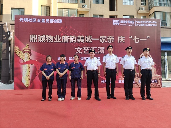 為熱烈慶祝建黨102周年,傳承紅色基因、提升紅色物業(yè)帶給業(yè)主的幸福感,在“七一”即將來臨之際,鼎誠公司聯合街道社區(qū)以及部分業(yè)主,在唐韻美城小區(qū)開展了“紅色文藝匯演”活動,表達對黨的熱愛和崇敬之情。
