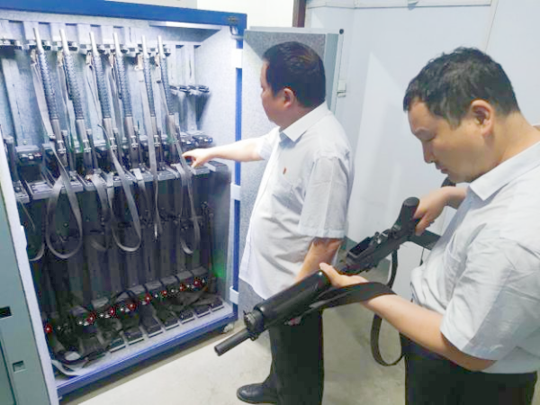 自查過程中,殷成軍重點(diǎn)檢查了槍支彈藥的維護(hù)保養(yǎng)情況,并對大隊(duì)槍彈庫、金庫出入臺賬,庫房電路、監(jiān)控等設(shè)備的運(yùn)行狀況進(jìn)行查看;隨后又對押運(yùn)車輛車況、車輛消防器材狀況進(jìn)行一一排查,確保無帶病車上路。