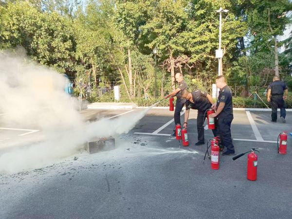9月14日下午3:00,平時安靜的中國銀行院內(nèi)熱鬧非凡,只見人群中一些守押隊員在消防教員的指導(dǎo)下,正手持滅火器對著一堆大火噴射滅火…….原來,守押三大隊正配合中國銀行安陽分行保衛(wèi)部等相關(guān)部門進(jìn)行消防模擬演練。