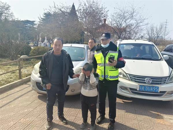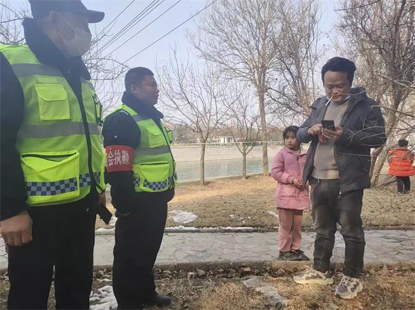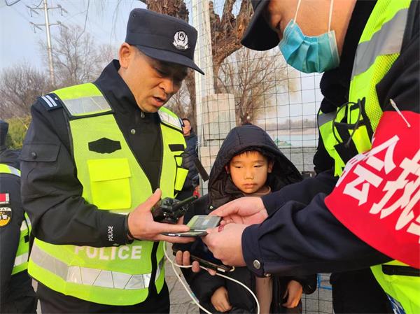 廟會(huì)執(zhí)勤期間,下午3時(shí)許,五中隊(duì)駐煙廠保安班長(zhǎng)孫海杰和王偉發(fā)現(xiàn)一小男孩走丟找不到父母,立即詢問孩子父母電話,和其父母取得聯(lián)系以后,安全把孩子交到父親手里。