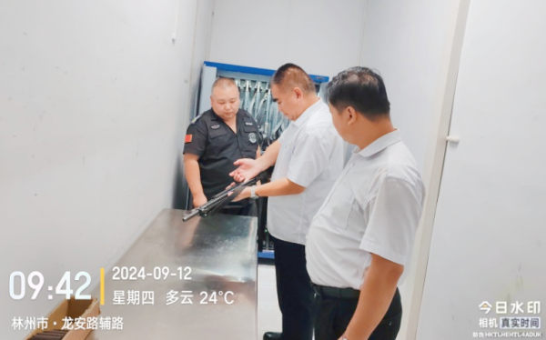 9月12日上午,守押分公司副經(jīng)理韋洪東到七大隊檢查工作,針對即將到來的中秋、國慶假期,進(jìn)行節(jié)前槍彈安全管理專項檢查。