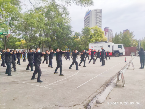 為迎接公司“大比武”考核,10 月 20 日,守押十大隊(duì)組織大隊(duì)部和水冶中隊(duì)開展了一場(chǎng)緊張而有序的擒敵拳合練。