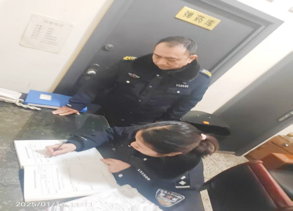 1月16日上午,安陽市龍安區(qū)太行小區(qū)派出所社區(qū)民警王靜靜到守押十二大隊(duì)相州中隊(duì)進(jìn)行槍彈安全檢查,副隊(duì)長李志民全程陪同。