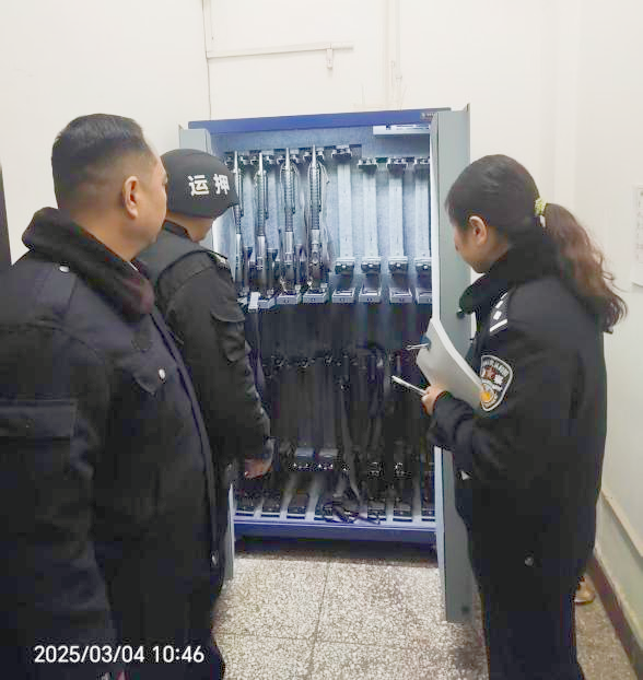 3月4日上午,安陽(yáng)市龍安區(qū)太行小區(qū)派出所社區(qū)民警王靜靜到守押十二大隊(duì)相州中隊(duì)檢查槍支彈藥,副隊(duì)長(zhǎng)李志民陪同檢查。