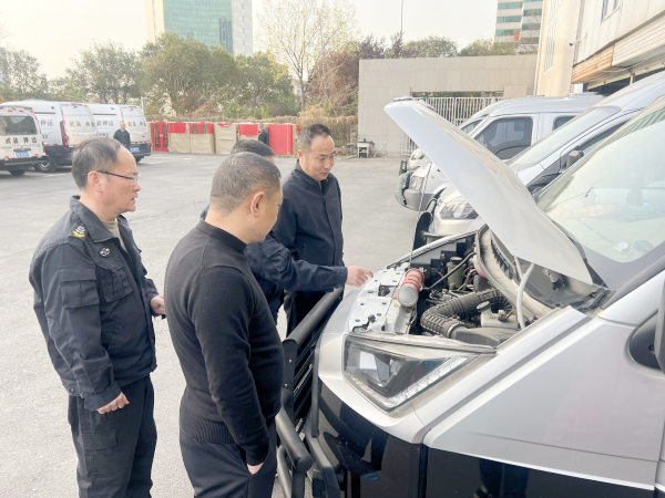 此次排查重點(diǎn)針對(duì)車輛的動(dòng)力系統(tǒng)、電路系統(tǒng)。大隊(duì)長(zhǎng)馮文峰打開引擎蓋,觀察水箱、油箱有無(wú)滴漏,聽發(fā)動(dòng)機(jī)運(yùn)轉(zhuǎn)聲音判斷是否存在異常;檢查電路系統(tǒng),查看車燈是否工作正常,各線路有無(wú)老化、破損,確保電路無(wú)漏點(diǎn)現(xiàn)象。