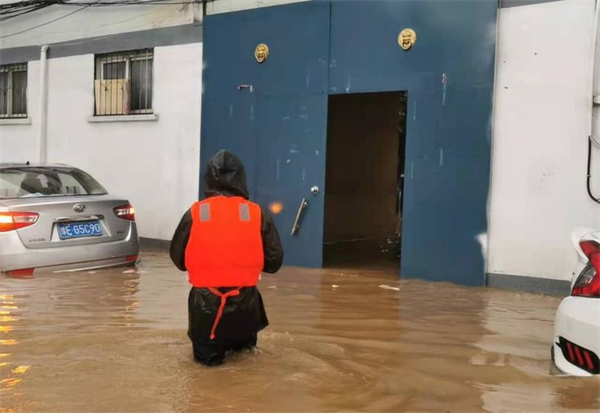 2021年7月22日早上7點(diǎn)左右,安陽幸福路工行憑證庫房值班隊(duì)員告急,由于下雨急,積水深,庫房有雨水倒灌情況。鄭芳軍隊(duì)長接到救援電話后,憑證庫房是工行的票據(jù)重地,汛情就是命令,立即組織6名防汛突擊隊(duì)冒著深及脖子的洪水,手拉救生繩,身穿救生衣,冒著生命危險(xiǎn)向憑證庫房挺進(jìn)。到達(dá)后,發(fā)現(xiàn)庫房門口水位上升,他們及時(shí)將票據(jù)挪到安全位置,防止浸泡受損,門口用沙袋進(jìn)行封堵,確保了憑證庫房安全。看到安全了他們又順原路冒雨淌水于晚上10點(diǎn)安全返回市行門崗。