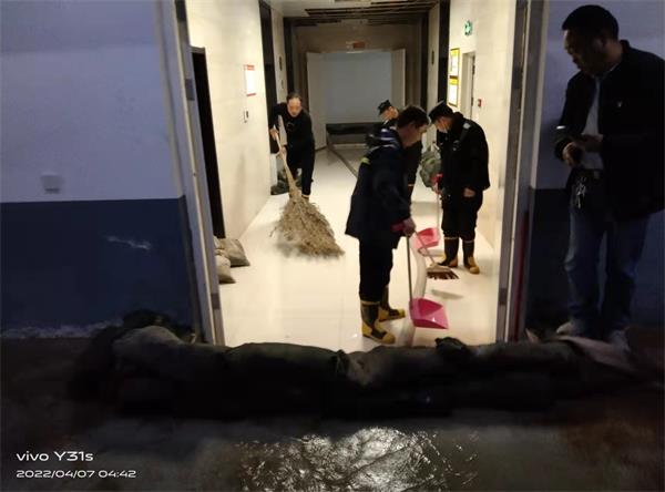 4月6日晚上十一點(diǎn),人防一大隊(duì)駐聯(lián)通公司東區(qū)崗點(diǎn)中、夜班的隊(duì)員交接完工作之后,夜班值班隊(duì)員杜懷濤、孟慶春開(kāi)始接班后的正常巡樓工作。當(dāng)他們巡邏到負(fù)二層時(shí),聽(tīng)到有水流的聲音,職業(yè)的敏感提醒他們,有管道跑水,順著流水的聲音巡去,果不其然,負(fù)二層中央空調(diào)系統(tǒng)供水管道破裂,管道里的水不停向外噴射,如果不及時(shí)處置,會(huì)引發(fā)負(fù)二層注水,給客戶(hù)造成財(cái)產(chǎn)損失。兩位值班隊(duì)員馬上通知監(jiān)控中心和值班班長(zhǎng),值班班長(zhǎng)邱文濤接到報(bào)警后迅速向中隊(duì)長(zhǎng)董紅衛(wèi)匯報(bào)情況,同時(shí)安排夜班同志到現(xiàn)場(chǎng)處理積水,董紅衛(wèi)趕赴現(xiàn)場(chǎng)后和值班隊(duì)員一起配合專(zhuān)業(yè)的維修人員處置險(xiǎn)情,經(jīng)過(guò)近五個(gè)小時(shí)的奮戰(zhàn),險(xiǎn)情得到妥善解決。