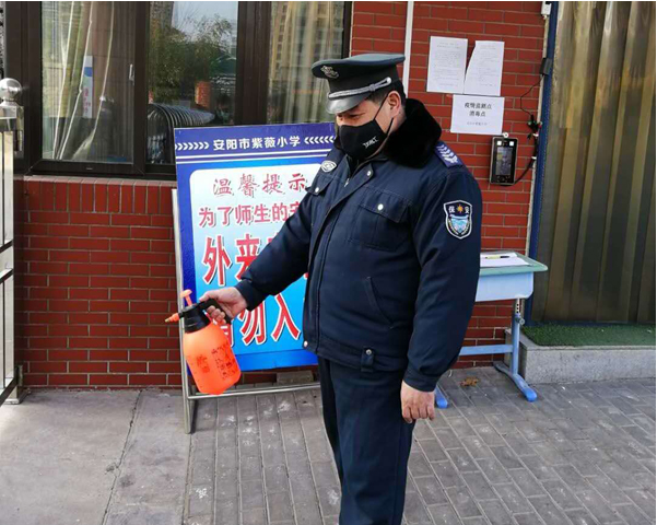 疫情發(fā)生后,人防一大隊80名校園保安按照公司、大隊和學(xué)校領(lǐng)導(dǎo)要求始終戰(zhàn)斗在抗疫工作前沿。在這場看不見硝煙的戰(zhàn)疫中涌現(xiàn)出許多沖鋒陷陣、主動協(xié)助學(xué)校開展防疫工作的保安隊員。紅廟街小學(xué)保安班長袁和平,每天除了做好本職工作,對進入校園的人員測量體溫,認真登記,守好學(xué)校防控疫情的首道防線外,還主動給學(xué)校校園和辦公室噴灑消毒液。無論白天與黑夜,只要客戶需要,他都隨叫隨到,為學(xué)校防控疫情工作做出自己的貢獻。