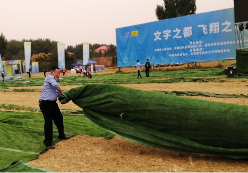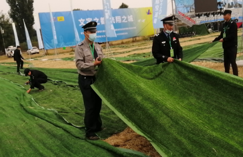 “把這邊拉整齊。”“我這里已經(jīng)鋪平了?!?月30日下午,第十二屆安陽航空運(yùn)動(dòng)文化旅游節(jié)主會(huì)場,在執(zhí)勤的公司保安員應(yīng)客戶要求忙著整理會(huì)場上草坪地毯。