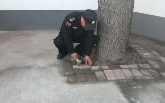 說干就干,保安隊員下班后,每天晚走一會兒,又是刨樹根,又是推沙石、找磚塊,用了2天時間鋪磚500余塊,整修地面30多平米,圓滿完成任務。