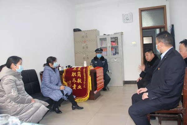 2021年1月22日上午,公司大院迎來兩位客人,文峰區(qū)東門小學(xué)校領(lǐng)導(dǎo),她們專程趕到公司送錦旗和表揚信,感謝人防一大隊保安員張躍洪兢兢業(yè)業(yè)為東門小學(xué)服務(wù),確保師生安全。