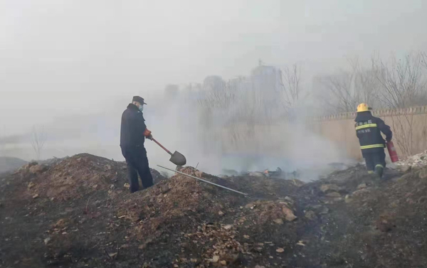 上午9時(shí)許,保安員屈國營、郭慶陽、李海軍、申安民巡邏至轄區(qū)中華路王官屯北路時(shí),看到路邊防護(hù)林草叢正在燃燒,由于天干物燥,火勢(shì)蔓延很快。隊(duì)員立即引導(dǎo)旁邊群眾疏散,撥打119消防電話報(bào)警,并從車上拿出滅火器冒著滾滾濃煙,全力撲滅大火,盡最大努力防止大火蔓延,避免造成更大的損失。雖然灰燼落滿了全身、汗水濕透了衣背、濃煙模糊了雙眼,但保安員依然斗志昂揚(yáng)、毫不畏懼。很快,消防救援人員趕到,保安員又配合消防人員,終將燃燒的干草撲滅。