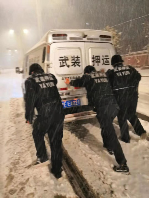 2月24日傍晚至夜間,守押七大隊各押運(yùn)車組奮力迎戰(zhàn)暴風(fēng)雪,全力確保押運(yùn)安全。