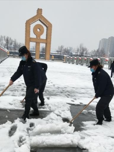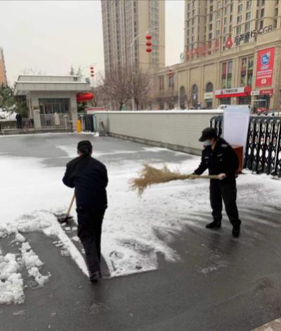 2月24日18時許,新年的第一場雪如期而來,飄落的雪花給特保大隊派駐崗點院內道路上鋪上了一層厚厚的積雪,為了消除安全隱患,確保客戶單位領導與工作人員的出行安全,特保大隊派駐各客戶單位隊員迅速行動起來,清掃積雪。隊員們周到的服務受到客戶好評。