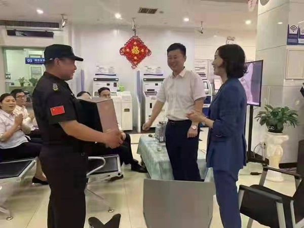 5月18日下午,中原銀行安陽(yáng)分行零售部總經(jīng)理王國(guó)賓和副總經(jīng)理暴潔,專(zhuān)程到老槐樹(shù)支行慰問(wèn)并表?yè)P(yáng)人防四大隊(duì)派駐這里的保安隊(duì)員許文革,對(duì)許文革盡職盡責(zé)的工作態(tài)度給予高度贊揚(yáng)。