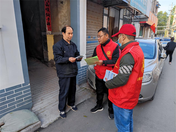 盡管當(dāng)天刮著大風(fēng),但志愿者們?nèi)霊粜麄鞯臒崆橐琅f高漲。大家身穿紅馬甲、頭戴小紅帽,分成七個(gè)小組,在社區(qū)工作人員的帶領(lǐng)下,對(duì)霍家村社區(qū)街道和居民樓院,近700多居民分發(fā)《文明市民手冊(cè)》和《安陽(yáng)市創(chuàng)建全國(guó)文明城市問(wèn)卷調(diào)查表》,向社區(qū)居民詳細(xì)解讀創(chuàng)建全國(guó)文明城市的目的、意義和內(nèi)容,引導(dǎo)大家了解文明常識(shí)、踐行文明行為、知曉并支持創(chuàng)文工作。