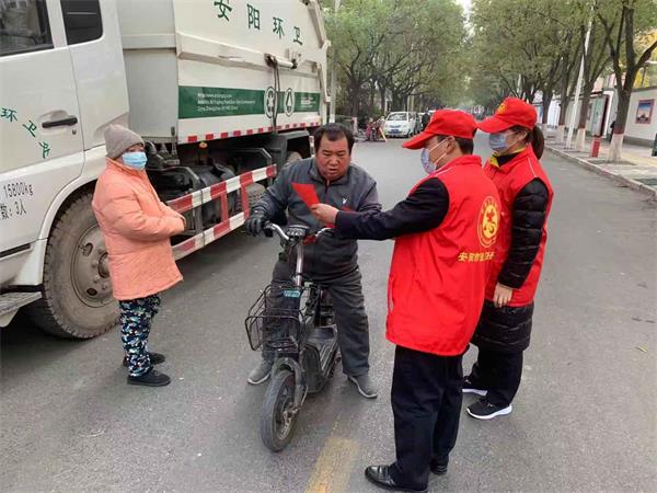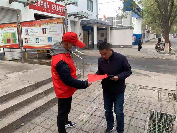 活動(dòng)中,在盤庚中社區(qū)門口、社區(qū)小廣場、周邊小區(qū)附近,公司志愿者們走進(jìn)樓棟入戶宣傳,走進(jìn)沿街對商戶宣傳,向來往人員進(jìn)行宣傳,共向社區(qū)居民和周邊商戶合計(jì)發(fā)放了100余份《安陽市文明行為促進(jìn)條例》宣傳材料。