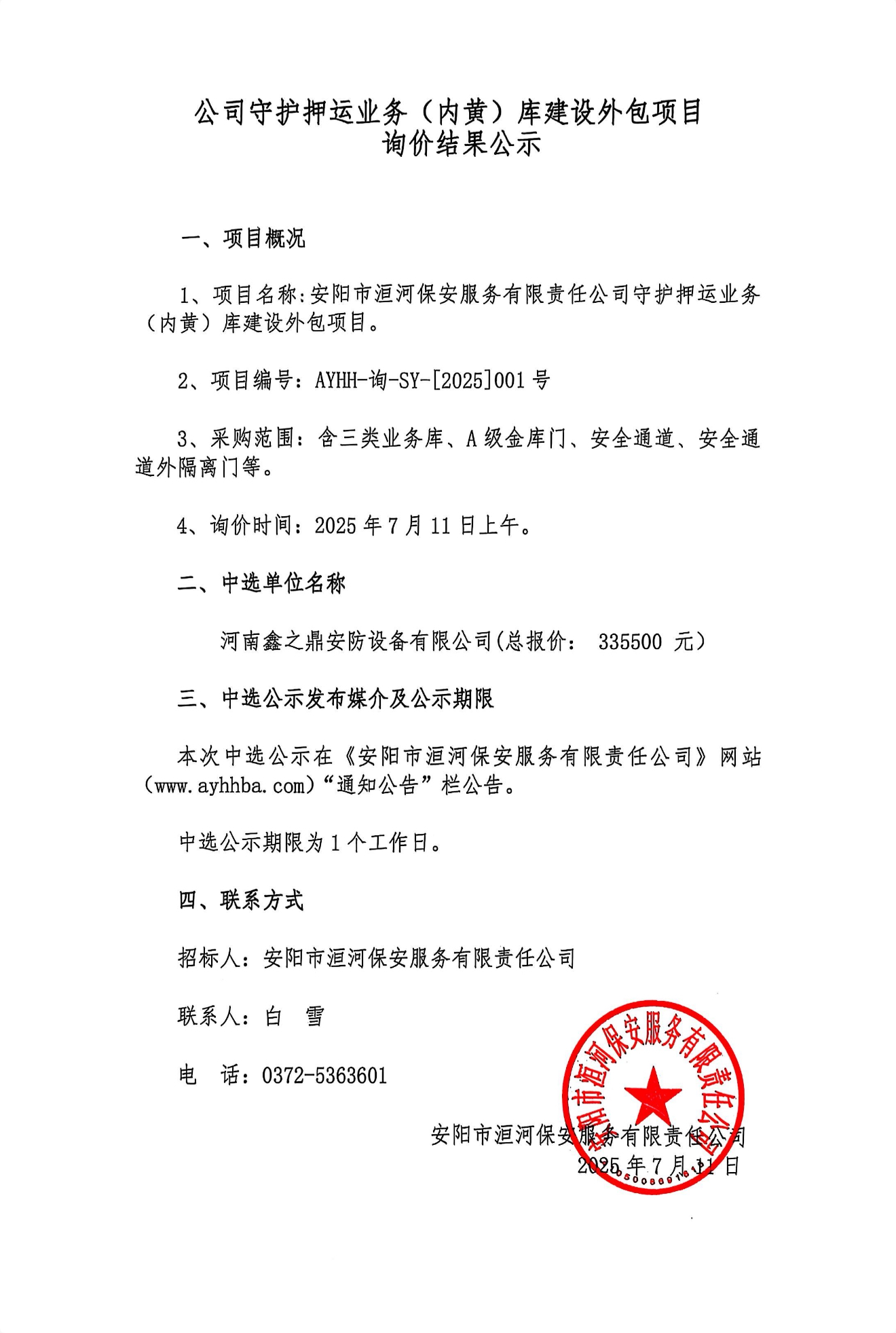 公司守護(hù)押運(yùn)業(yè)務(wù)(內(nèi)黃)庫建設(shè)外包項(xiàng)目詢價(jià)結(jié)果公示